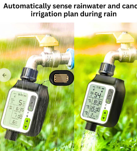 Rain sensing water timer for drip irrigation setups.